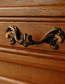 - アップライドモールディングの装飾が美しい、オーク材のアンティークカップボードチェスト (i-208-f)