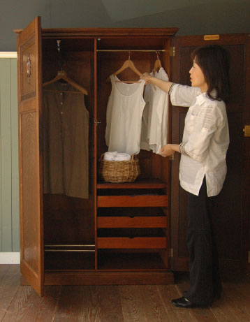 閉じたときと開いたときで表情が全く違うので、2度楽しめるのも魅力的!左側には、丈の長いワンピースやコートを、右側には細かいものをたっぷり収納して便利にお使い下さいね。※アンティークは1点ものです。他の方がカートに入れてSOLD OUTになった時点で同じものはご準備できませんので、ご了承下さい。