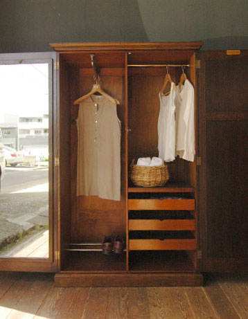 イギリスから届いた雰囲気たっぷりなワードローブ。珍しい2枚戸タイプです。