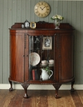 - マホガニー材の美しいアンティーク家具、お部屋の角に置けるコーナーシェルフ (q-3327-f)