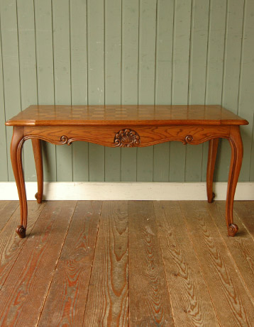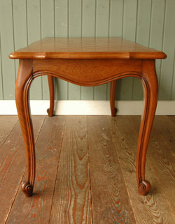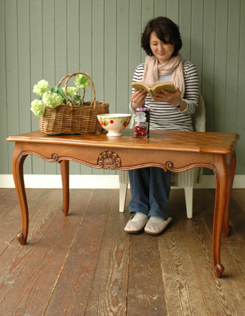 フランスから天板の形がとってもキレイなサロンテーブルを見つけてきました。 ソファや椅子に座って丁度いい高さのテーブルなので、使い勝手もよく、リビングでお茶を飲みながらゆっくりくつろげます。