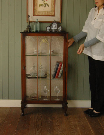 ガラスももちろん当時のもの。よくぞ割れずに居てくれました!と言いたくなってしまうくらい、とってもキレイです。何を入れても、入れたものを素敵に見せてしまう・・・そんなアンティークの飾り棚。お気に入りのコーヒーカップや食器、ワイングラスやお酒のビン、雑貨などなど「どこに置こうかな?」と思うお気に入りがある方にオススメです。