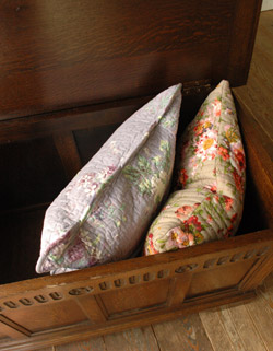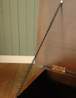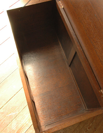 とっても便利なアンティークのベンチが届きました。座るのはもちろん、フタを開けると、収納たっぷりなんです。