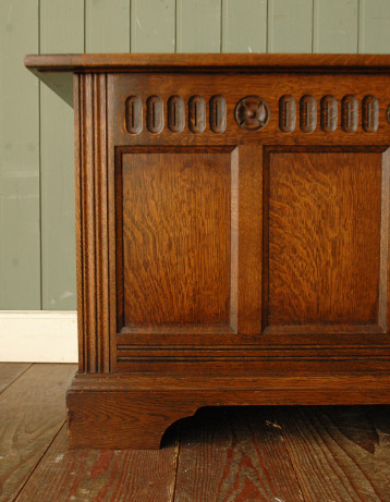 - 英国から届いたアンティークのボックス収納家具、彫刻が美しいブランケットボックス (h-129-f)