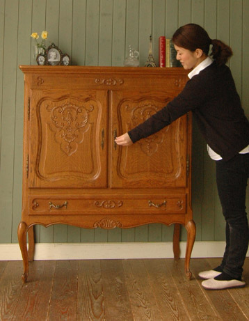 上品で美しいデザインが目を引くフランスのキャビネット。
