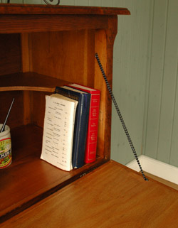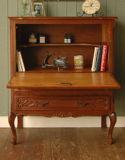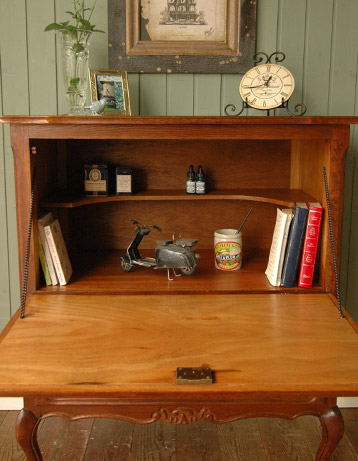 現代では、リビングに置いて本棚として、本やDVDを収納したり、和室用のライティングビューローとして使ってもステキ。不思議と和室にもピッタリで合わせやすいですよ。