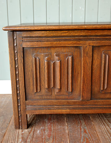- 英国から届いたアンティークのボックス収納家具、彫刻が美しいブランケットボックス (h-129-f)