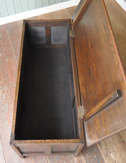 とっても便利なアンティークのベンチが届きました。座るのはもちろん、フタを開けると、収納たっぷりなんです。