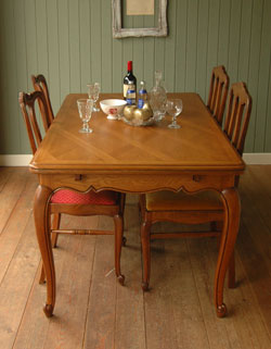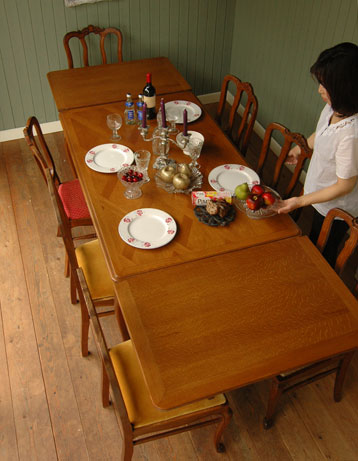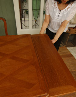 一見、普通のテーブルですが、実は「ドローリーフテーブル」と言って、サイドが引き出せるタイプのテーブルです。