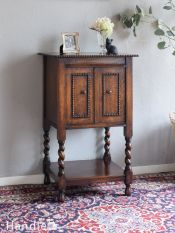 - ビーディング扉が華やかな英国アンティークの家具、ツイスト足のおしゃれなサイドキャビネット (q-3428-f)