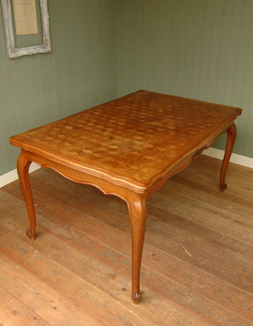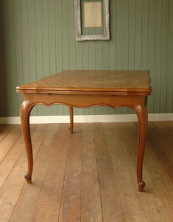 - ダイヤ型の模様が美しいアンティークの伸長式テーブル、フランスから届いた猫足のドローリーフテーブル (m-1202-f)