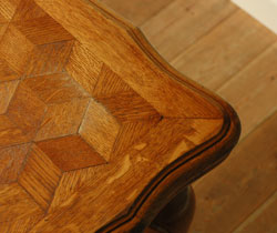 模様の1つ1つは、厚い木が組み合わされて作られているので、天板の裏から見てもキレイ!
