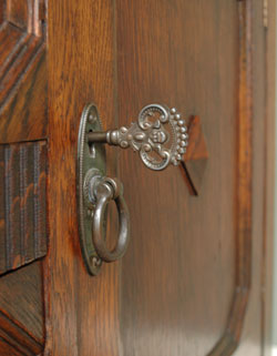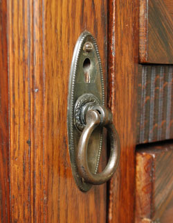 - ツイスト脚とビーディングの装飾が美しい、英国アンティークのカッコいいキャビネット (q-3392-f)