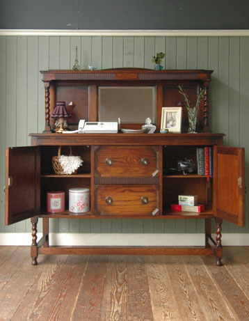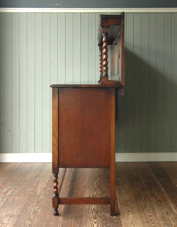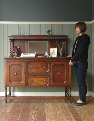 - ツイストの支柱がとっても美しいアンティークの家具、英国アンティークの鏡がついたミラーバックサイドボード (h-175-f)