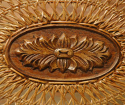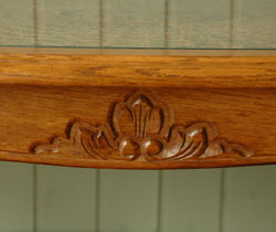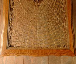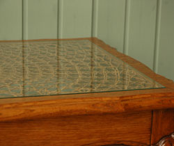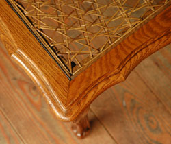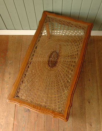 天板にアンティークのガラスがはめ込んであります。おかげで、キレイに編まれた模様も切れているところがほとんどなく、美しい状態で残っていました!