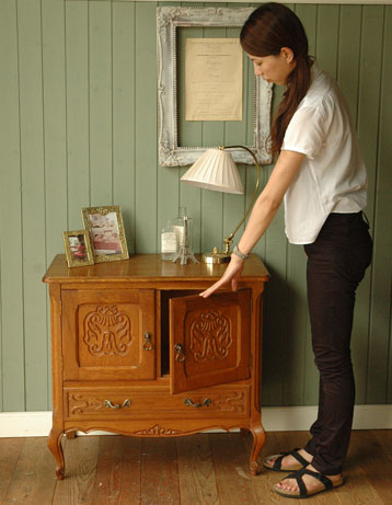 フランス製らしく、ものすごく彫がキレイなキャビネット。
