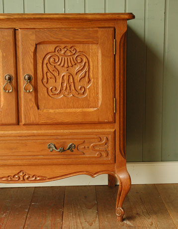 - 彫刻が美しいフレンチアンティークのキャビネット、猫足がおしゃれなオーク材のサイドボード (j-3645-f)