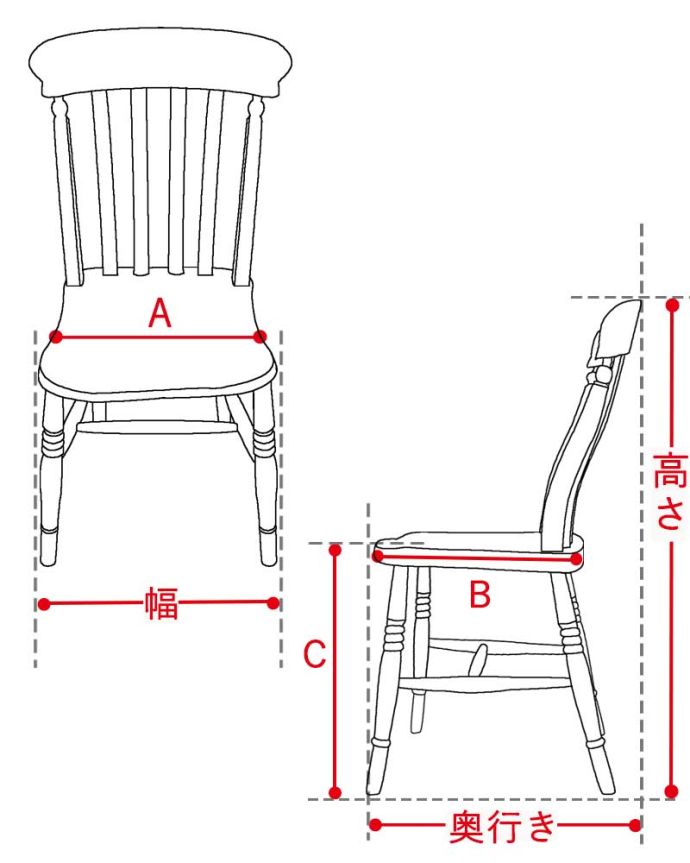 また、座面も無垢材を使っているものが多いので、同じように彫刻が施され、糸を紡がなくなってからは、見せるための豪華な椅子として、人気になった椅子です。
