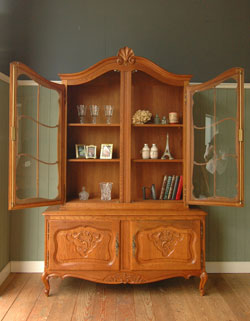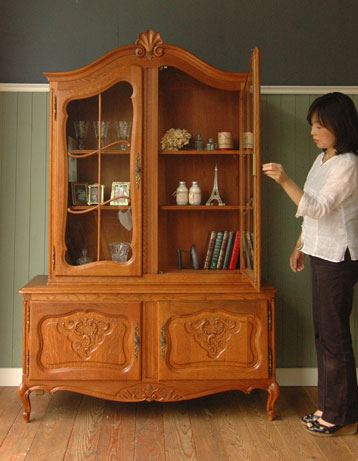 - キラキラ輝く華やかなアンティーク家具、ウォールナット材のパーラーキャビネット (h-159-f)