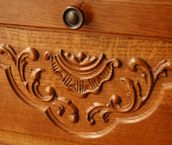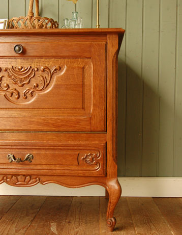 - 彫刻が美しいフレンチアンティークのキャビネット、猫足がおしゃれなオーク材のサイドボード (j-3645-f)