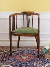 お部屋の角で使えるコーナーチェア、透かし彫りが豪華な英国アンティークアームチェア (商品番号 k-1563-c)