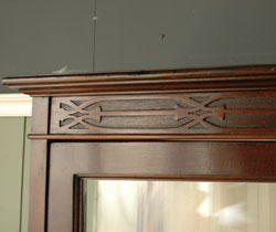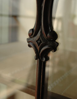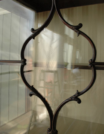 とっても美しいガラスのキャビネットが到着しました。割れずに残っていたガラスの部分には美しいデザイン彫りが。スリムで華奢で、なんとも優雅なキャビネットです。