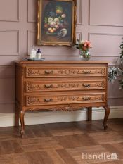 - フランスから届いた美しいアンティーク家具、エレガントな猫足のリビング3段チェスト (j-3650-f)