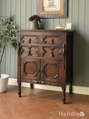 - アップライドモールディングの装飾が美しい、オーク材のアンティークカップボードチェスト (i-208-f)