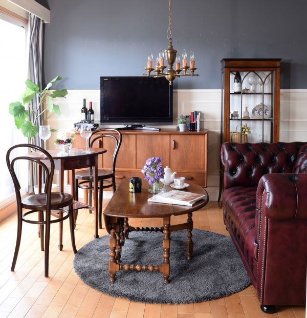 Handleのアンティークは、脚の裏にフェルトキーパーをお付けしています。床を滑らせて女性でも移動が出来るので、ご安心下さい。