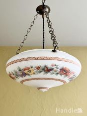 - パンジーとアネモネの周りを飛ぶ蝶々の照明、イギリスから届いたアンティークのハンギングボウル (m-9570-z)