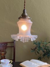 - ピンク色のフリルがとってもキュートな照明、アンティークガラスのペンダントライト (k-4846-z)