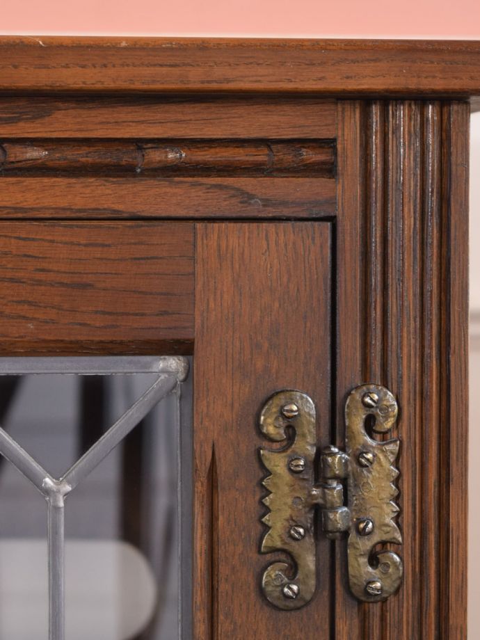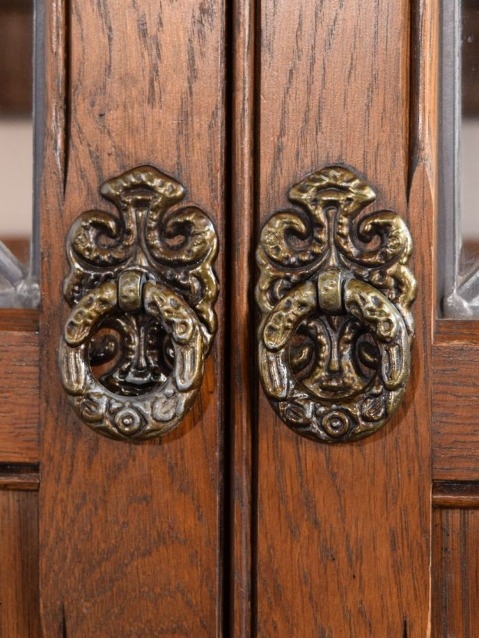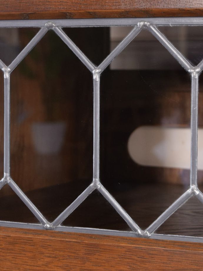 イギリスのアンティーク家具、ステンドグラスの扉がキレイな扉付きの本棚 (商品番号 k-2987-f)