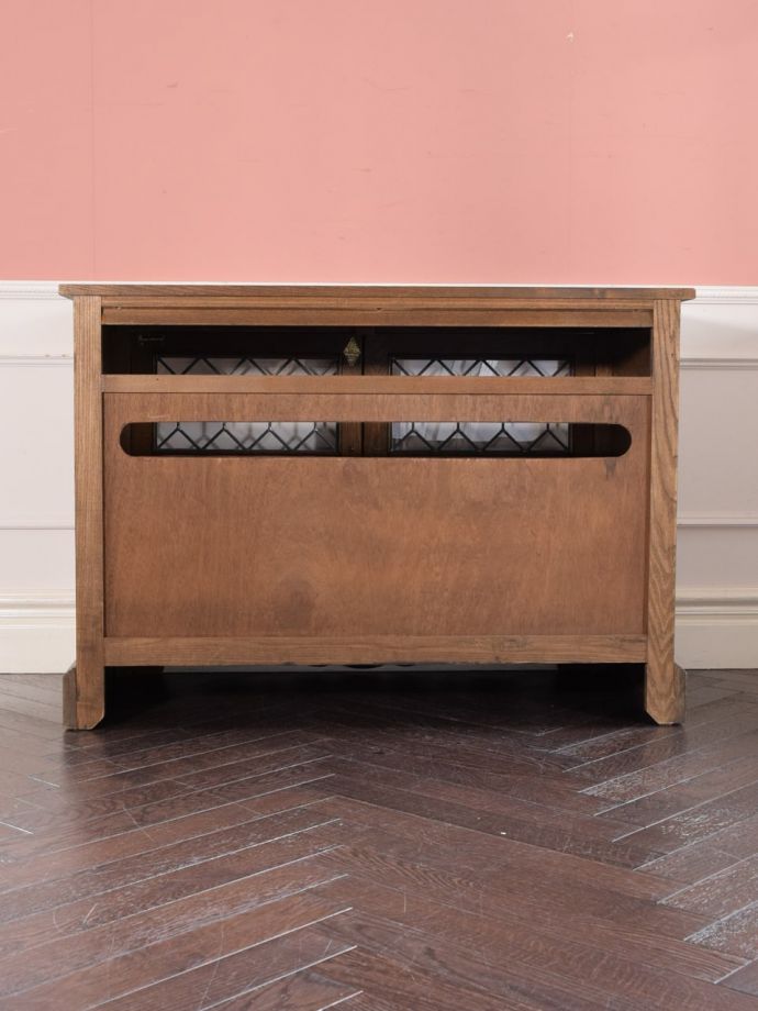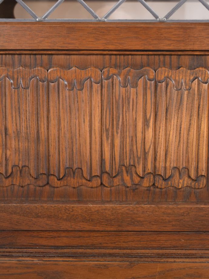 - 幾何学模様のステンドグラスが美しい本棚、英国アンティークのブックシェルフ (q-3444-f)