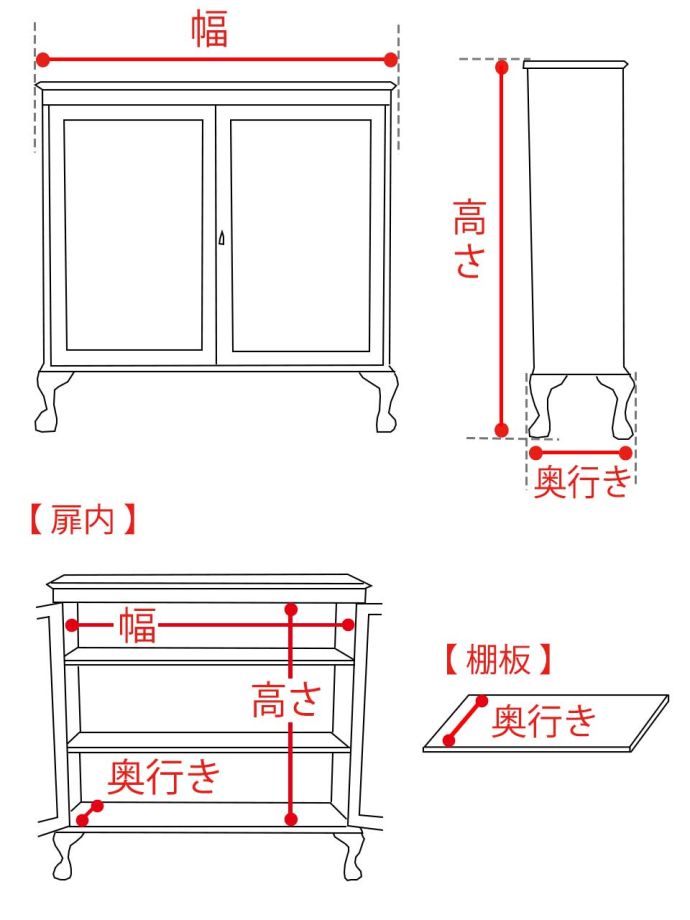 【 天板までの高さ 】121cm 【 扉内 】幅82×奥行き28×高さ94cm 【 棚板 】取り外し可能 奥行き28cm 高さ(1段目)30cm (2段目)31cm (3段目)31cm |
