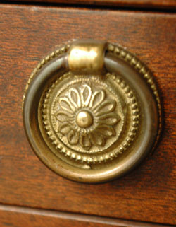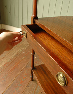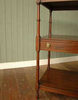 - 英国アンティークのデスクトップシェルフ、マホガニー材で出来た引き出し付きのオープンシェルフ (m-1228-f)