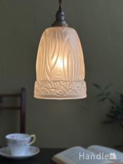 - ミルク色のアンティークガラスの照明器具、リース模様の型押しが可愛いペンダントライト (k-5061-z)