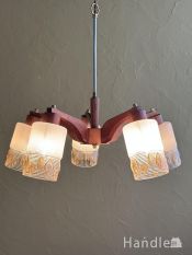 - 葉っぱがデザインされたガラスシェードの照明、イギリスから届いたビンテージの木製シャンデリア (k-6020-z)
