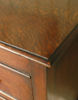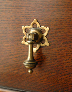 木目も色もオーク材らしくかっこいいのに、さらに上品な飾り彫りが入って優雅な風合いが漂っています。