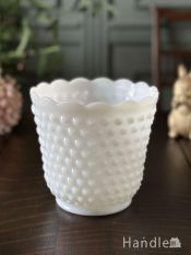 - ホブネイルがカッコいいアンティークガラスの器、真っ白なミルク色のおしゃれなガラスポット (m-9548-z)