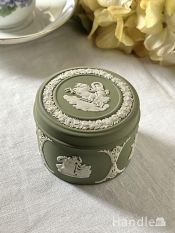- セージグリーン色のジャスパーウェア、英国ウェッジウッドのアンティークボックス (k-6024-z)
