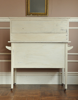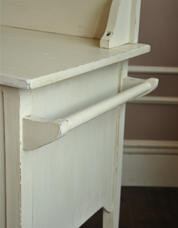 背板に美しいグリーンのタイル!高級感が漂うアンティークのウォッシュスタンドを見つけてきました。オーク材にホワイトペイントが施してある、なんとも贅沢なウォッシュスタンドです
