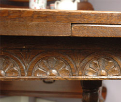 - 英国アンティークの伸長式ダイニングテーブル、クイーンアン様式のドローリーフテーブル (q-3362-f)