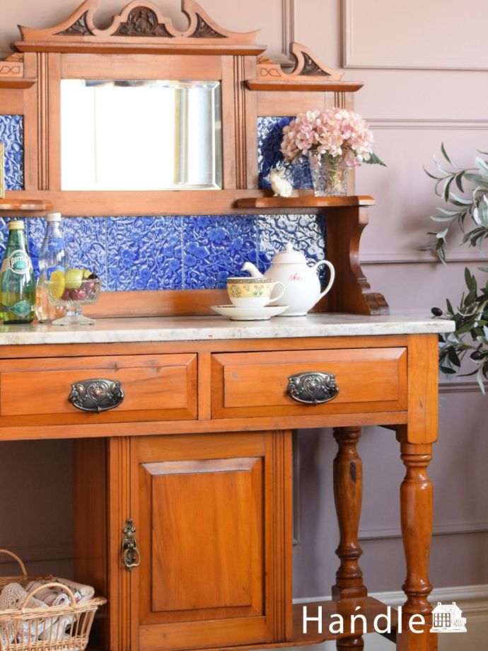- アンティークのおしゃれな家具、アンティークタイルが美しいウォッシュスタンド (k-3345-f)