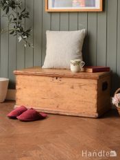 - キャンドルボックスが付いたアンティークの収納箱、イギリスから届いたアンティークのブランケットボックス (h-222-f)