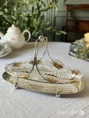 - アンティークガラスのおしゃれなバスケット、装飾が豪華なプレスドグラスのカゴ (m-9851-z)