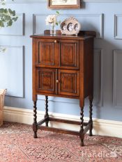 - 英国から届いためずらしいアンティークキャビネット、ツイスト脚が美しいオーク材の小さなカップボード (i-235-f)