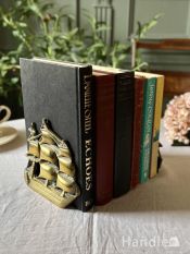 - 大海原を進む帆船モチーフのアンティーク雑貨、英国から届いたカッコいいアンティークブックエンド (m-9768-z)