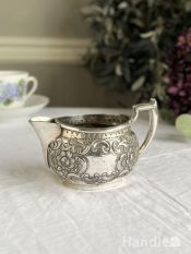 - 英国アンティークのおしゃれな食器、お花の装飾が可愛いシルバープレートのミルクポット (k-6073-z)
