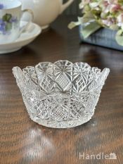 - 縁取りがキラキラ輝く可愛いガラス器、 英国アンティークのプレスドグラスの器 (pg-8352)