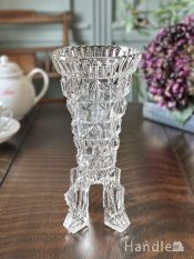 - スクエア型の型押し模様がキラキラ輝く、英国アンティークガラスの足つき花びん (pg-8353)